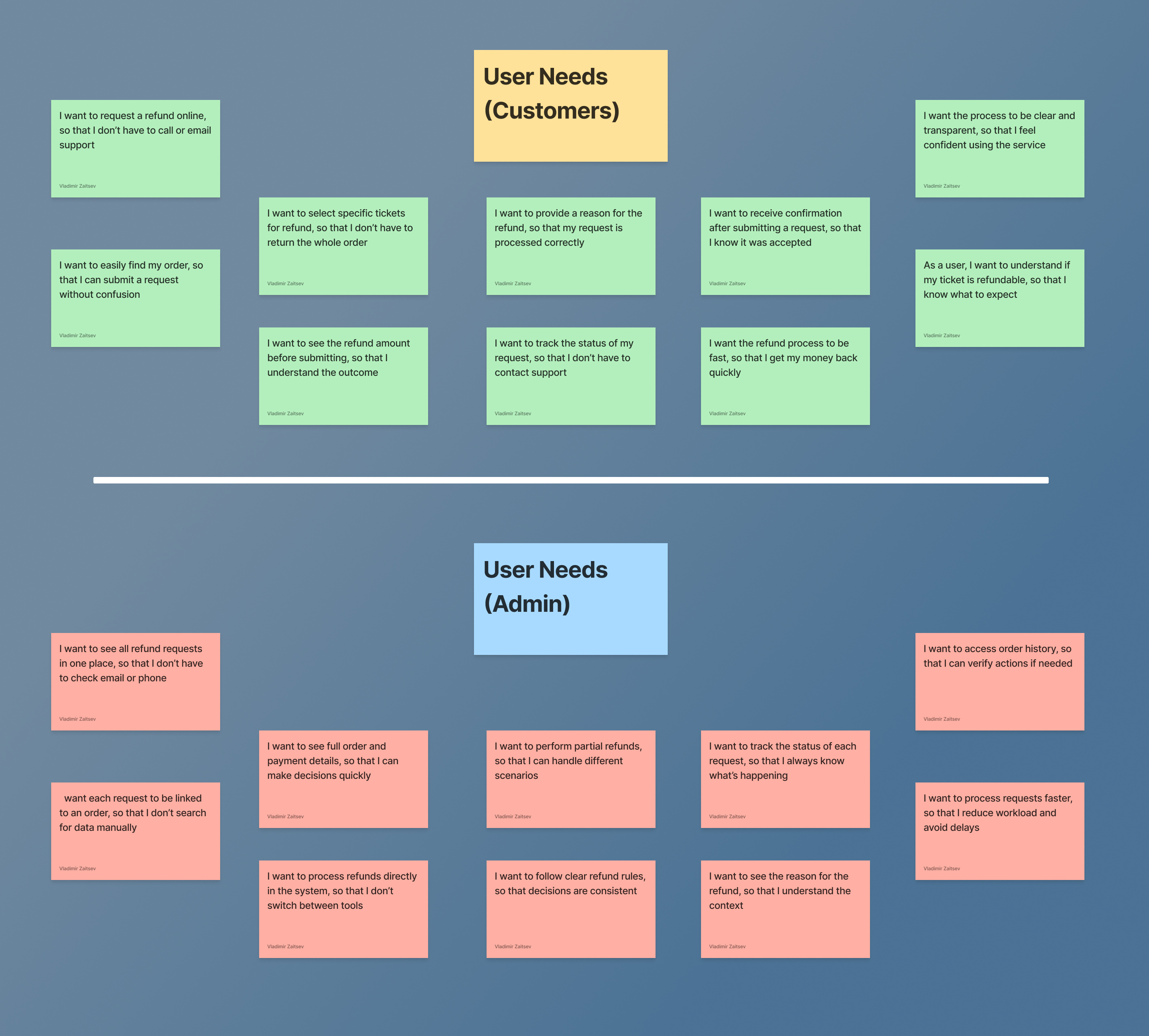 Based on the analysis of refund processes and common scenarios, I identified key needs for both customers and administrators