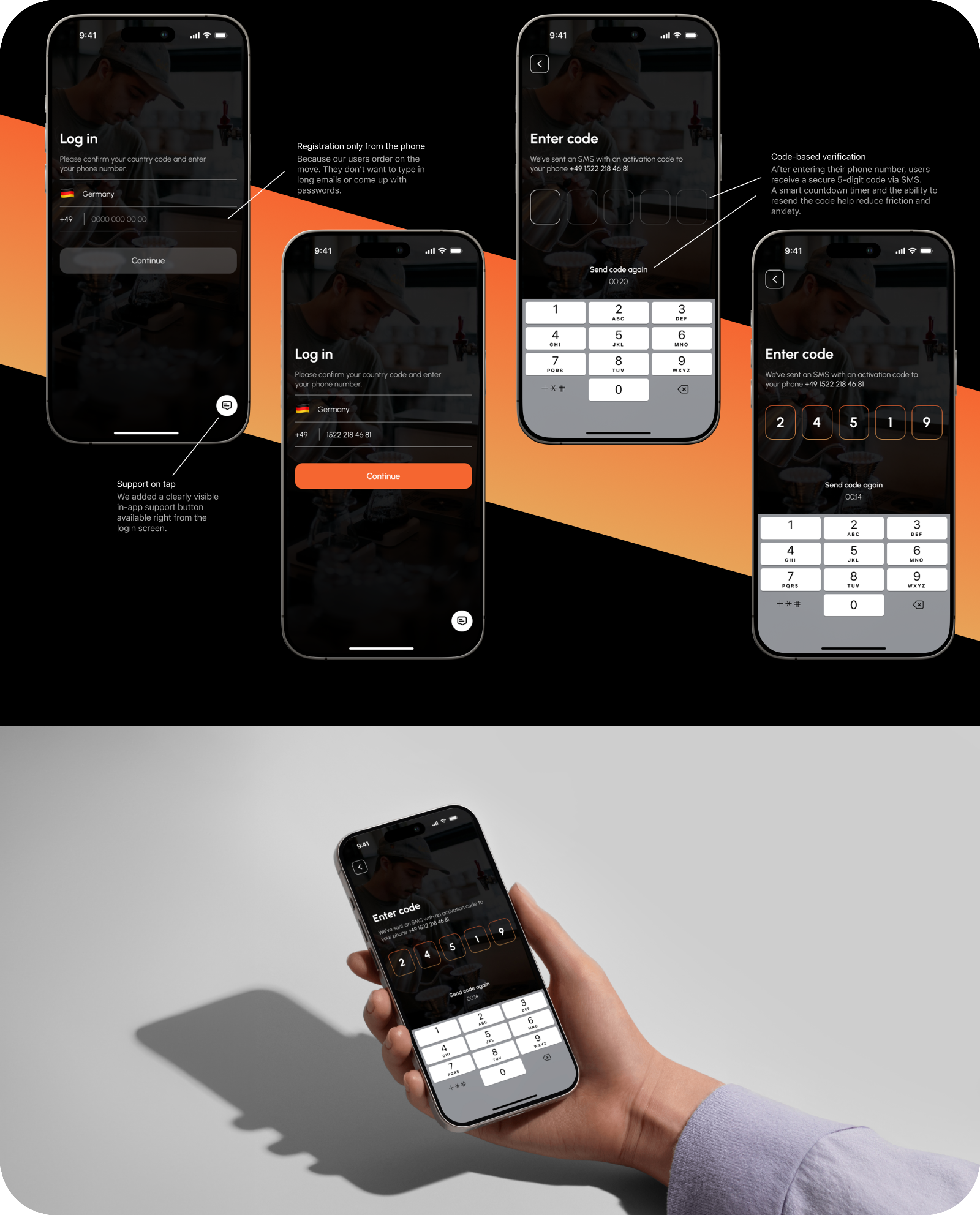 The onboarding flow was designed to minimize friction and get users to their first order as quickly as possible.